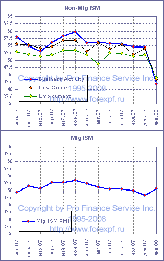 В понедельник ключевым показателем американского календаря экономической статистики будет индекс деловой активности в производственном секторе ISM. Региональные обзоры PMI отражают возрастающее давление, которое ощущает на себе производственный сектор американской экономики со стороны спада рынка недвижимости. Это позволяет предположить падение национального ISM ниже пограничного значения в 50 пунктов, которое отделяет рост деловой активности от спада. Напомним, что в январе производственный ISM неожиданно вырос до 50.7 пункта. Но февральское значение будет лишено этого оптимизма. Средний прогноз экономистов, опрошенных агентством Reuters, предполагает, что индекс составит 49 пунктов, однако мы более пессимистичны на этот счет, предполагая, что фактическое значение индекса окажется ближе к 48 пунктам. В установленных тенденциях прошедшей недели понедельник сбалансирован для продолжения падения курса доллара. Данные по деловой активности в производственном секторе экономики США должны стимулировать слабость американской валюты.