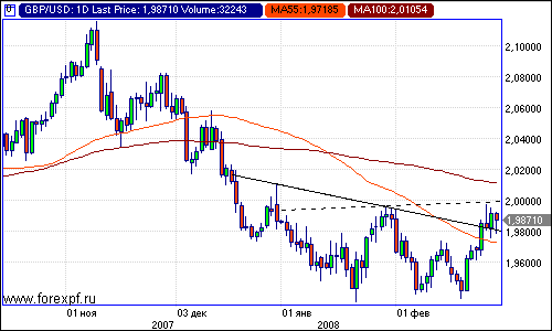 Ситуация, сложившаяся на прошедшей неделе на валютном рынке, оказалась весьма благоприятной для тех его участников, которые придерживались коротких позиций в долларе, в том числе и против британской валюты. В этой паре можно было наблюдать материализацию рисков роста, о которых мы говорили в прошлом еженедельном обзоре. В результате, после некоторой коррекции в понедельник, поддержанной слабым отчетом по рынку жилья Hometrack, фунт, преодолев 55-дневную скользящую среднюю, проверил на прочность сопротивление в районе максимумов января поблизости от $1.9959. Следует отметить, что основным драйвером роста пары стало не улучшение настроя участников рынка в отношении британской валюты, а ярко выраженное ухудшение отношения к американскому доллару, дополнившее благоприятную техническую картину. Что же касается экономической статистики из Великобритании, опубликованной на этой неделе, то она в целом выглядела довольно негативной для фунта. Данные по потребительскому кредитованию, одобренным заявкам на получение ипотечных кредитов и кредитам, выданным под обеспечение недвижимости, носили достаточно смешанный характер. В то время как чистый потребительский кредит оказался несколько лучше прогнозов (stg0.941 млрд. против stg0.800 млрд. и против stg0.594 млрд. в декабре), объем кредитов, выданных под залог недвижимости, в январе сократился до stg7.416 млрд. по сравнению с stg7.915 млрд. в декабре и оказался хуже среднего прогноза экономистов в stg8.1 млрд. Число одобренных заявок на получение ипотечного кредита, между тем, выросло до 74 000 после 72 000 в декабре, однако, оказавшись несколько лучше ожидавшихся 70 000, показатель все же остается вблизи минимальных уровней за все время своего существования.