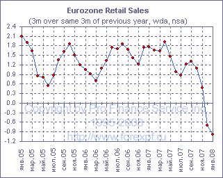 Данные по розничным продажам в Еврозоне не оправдали ожиданий