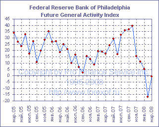 Индекс деловой активности ФРБ Филадельфии в марте оказался несколько лучше ожиданий в -19.0 пунктов и лучше -24.0 пункта в феврале, однако остался в отрицательной зоне и составил -17.4. Индекс новых заказов поднялся немного выше и составил -9.3 пункта после -10.9 ранее, индекс занятости, однако, оказался в отрицательной зоне и достиг -4.7 пункта после 2.5 в предыдущем месяце. Индекс уплаченных цен, тем временем, вырос с 46.6 до 54.4, тогда как индекс отгрузок поднялся с -12.2 до -6.3, а индекс запасов снизился с -13.0 до -13.5 пункта. Между тем, заметное улучшение продемонстрировал индекс деловой активности в шестимесячной перспективе, который в марте составил -0.5 пункта после -16.9 в феврале. ProFinance.Ru - Forex News / Новости Форекс