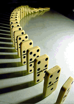 В этой статье мы рассуждали на тему возможного эффекта домино, которое охватит все страны вслед за угасанием звезды американской экономики. Мы признаем, что развитие ситуации в ближайшие месяцы трудно предсказуемо, но все же предлагаем четыре не взаимоисключающие траектории падения костяшек домино.