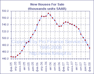 Согласно опубликованному сегодня отчету, продажи новых домов в феврале вновь продемонстрировали падение, которое составило 1.8%, однако годовой объем продаж, составивший с учетом сезонных колебаний 590 000, оказался выше ожиданий аналитиков, прогнозировавших падение до 580 000. Снижение продаж было зафиксировано на северо-востоке, где оно составило 40.3%, и на среднем западе, где продажи сократились на 6.4%, тогда как на юге и западе был отмечен рост продаж на 5.7% и 0.7% соответственно. В то время как продажи в феврале продемонстрировали сокращение, средняя цена продажи в целом по стране прибавила 8.2% до $244 100, в результате чего в годовом исчислении уровень цен снизился на 2.7%. Между тем, данные за январь были пересмотрены с 588 000 до 601 000. Число домов, выставленных на продажу в феврале сократилось с 481 000 до 471 000, в результате чего коэффициент продажи/запасы составил 9.8 месяца. ProFinance.Ru - Forex News / Новости Форекс