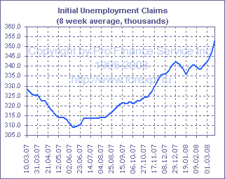Отчет департамента труда США, опубликованный сегодня, показал, что число новых заявок на получение пособий по безработице в неделю до 22 марта сократилось на 9 000 по сравнению с предыдущей неделей и составило 366 000, что оказалось заметно ниже среднего прогноза аналитиков, ожидавших роста до 380 000. Предыдущие данные по заявкам были пересмотрены, в частности в неделю до 15 марта их число было пересмотрено с 378 000 до 375 000, а в неделю до 8 марта - с 356 000 до 347 000. В результате, среднее число новых заявок за последние четыре недели составило 358 000, поднявшись на 1 750 по сравнению с 356 250 неделей ранее (прим. ProFinance.ru: показатель был пересмотрен с 365 250), а менее волатильный восьминедельный показатель остался на уровне 352 875. Общее число лиц, получающих пособие по безработице, тем временем, в неделю до 15 марта сократилось с 2.850 млн. до 2.845 млн., тогда как среднее число таких лиц за четыре недели составило 2.824 млн. по сравнению с 2.799 млн. неделей ранее. ProFinance.Ru - Forex News / Новости Форекс