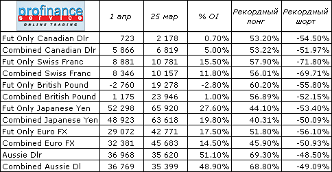 Данные CFTC по спекулятивным позициям на IMM на 1 апреля