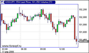 На торгах в пятницу доллар оказался под давлением продавцов на фоне неутешительных результатов отчета американской компании General Electric за 1 квартал. Чистая прибыль крупнейшей автомобильной компании США в первом квартале упала на 6% до $4.3 млрд, или 43 цента pа акцию, против $4.57 млрд, или 44 центов pа акцию, годом ранее. Кроме того, GE понизила свой прогноз по прибыли на акцию на 2008 год до $2.2-2.3 против прогнозов аналитиков в размере $2.43, а также прогноз по прибыли на акцию во 2 квартале до 53-55 центов против предварительной оценки 58 центов.