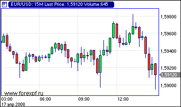 Евро/доллар скорректировался с исторических максимумов в районе $1.5982 под воздействием реакции рынка покупками доллара на публикацию отчета о доходах Merrill Lynch за 1 квартал. Несмотря на то, что банк сообщил об квартальном убытке в размере $2.20 на акцию против ожидаемых $2.00, сумма списаний составила $3 млрд против прогноза $6-8 млрд, который недавно был озвучен в WSJ. Дополнительное давление на евро оказали продажи валюты в паре с британским фунтом, которому, в свою очередь, поддержку оказали слухи о возможной скорой помощи правительства и Банка Англии по регулированию ситуации в ипотечном секторе, а также исследование Barclays, показавшее, что инфляционные ожидания в Великобритании достигли многолетних уровней.