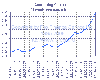 Еженедельный отчет Департамента труда США, опубликованный сегодня, продемонстрировал, что в неделю до 12 апреля число новых заявок на получение пособий по безработице выросло на 17 000 и составило 372 000 после 355 000 (прим. ProFinance.ru: показатель пересмотрен с 357 000) неделей ранее, что оказалось чуть ниже среднего прогноза аналитиков, прогнозировавших рост на 18 000 до 375 000. В результате, среднее число заявок безработных за четыре недели составило 376 000 после 376 750 неделей ранее, а менее волатильный восьминедельный показатель вырос с 360 375 до 362 375. Общее число лиц, получающих пособия по безработице, тем временем, в неделю до 5 апреля выросло с 2.958 млн. до 2.984 млн., а четырехнедельное среднее значение поднялось с 2.907 млн. до 2.937 млн. Источник: ProFinance.Ru - Новости рынка Форекс