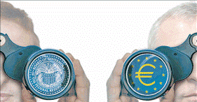 Ближайший из этих рисков - это скачок валютных курсов с дальнейшим быстрым ростом евро против доллара, что приведет к сокрушительному удару для европейской экономики и ускорит темпы инфляции в США. Стратеги ФРС и ЕЦБ полагают, что разница в действиях банков объясняется различиями в экономической ситуации, сложившейся в США и Еврозоне, однако, независимые экономисты указывают на другие, более глубокие причины. По их мнению, дело заключается в разности подходов: ФРС сосредотачивает усилия на максимизации занятости и достижении стабильности цен, а ЕЦБ занимается только формальной инфляционной целью. С определенной точки зрения, по мере развертывания кризиса различий в политиках становилось меньше. Например, оба центральных банка предоставляли наличность для спасения финансовых рынков, оказавшихся в отчаянном положении. Однако в других аспектах, например, в контексте движения валютных курсов, такие различия сохраняются. ЕЦБ выразил обеспокоенность быстрым повышением стоимости евро в паре с долларом, а ФРС в основном приветствовала снижение стоимости доллара, усматривая в нем опору для роста, хотя внутри банка и высказывались опасения по поводу того, что это снижение может выйти из-под контроля.