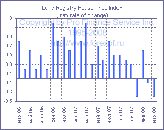 Опубликованный сегодня отчет Land Registry продемонстрировал, что в марте этого года индекс цен на жилье в Великобритании составил 224.7 пункта, что соответствует падению на 0.4% по сравнению с предыдущим месяцем, в результате чего годовые темпы роста достигли +3.6% г/г (прим.ProFinance.ru: сокращение темпов роста наблюдается седьмой раз подряд) после+5.3% г/г в феврале. Согласно отчету, средняя цена дома, таким образом, достигла stg184798. Кроме того, по данным Land Registry, среднемесячный объем сделок в период с октября прошлого года по январь текущего года составил 81 926, что на 26% ниже аналогичного показателя годом ранее, при этом объем сделок в январе сократился до 53 221 с 76 424 в декабре и 97 581 в ноябре.