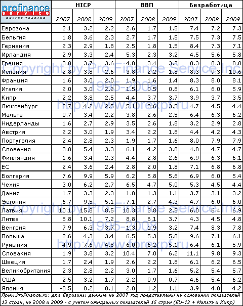 Что касается темпов роста ВВП, то здесь рост показателя в Германии на 2008 год был пересмотрен с +1.6% г/г до +1.8% г/г, во Франции - с +1.7% г/г до +1.6% г/г, в Италии и Испании - с +0.7% г/г до +0.5% г/г и с +2.7% г/г до +2.2% г/г. На 2009 год, между тем, прогнозы были пересмотрены с +2.2% г/г до +1.5% г/г для Германии, с +1.8% г/г до +1.4% г/г для Франции, с +1.6% г/г до +0.9% г/г для Италии и с +2.3% г/г до +1.8% г/г для Испании. Темпы роста ВВП Великобритании на 2008 год оставлены на прежнем уровне в +1.7% г/г, а на 2009 год пересмотрены с +2.5% г/г до +1.6% г/г. Источник: ProFinance.Ru - Новости рынка Форекс