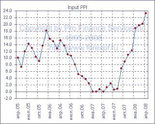 Рост давления на цены на выходе в апреле в большей степени объясняется ростом цен на компоненты, относящиеся к иной продукции (+3.6% м/м до +8.7% г/г), способствовавшему росту общего индекса на 0.58%. Заметный эффект, тем временем, также оказал рост цен на топливо (+2.3% м/м до +25.4% г/г), алкоголь и табак (+2.4% м/м до +6.4% г/г) и продукты питания (+0.7% м/м до +9.3%), внесшие в месячный рост индекса 0.25%, 0.32% и 0.11% соответственно. Следует отметить, что эти компоненты также во многом обусловили ускорение темпов роста годового показателя: изменения цен на иную продукцию привнесли в индекс 1.47%, цены на топливо добавили 2.39% роста, а цены на продукты питания и табак и алкоголь обеспечили 1.42% и 0.88% соответственно. Между тем, увеличению темпов роста в годовом исчислении также способствовал рост цен на изделия из металлов, которые выросли на 0.7% м/м до +3.2% г/г и обеспечили 0.28% роста, цены на химическую продукцию поднялись на 0.4% м/м до +8.9% г/г и "привнесли" в показатель 0.53%, а цены на бумагу и аналогичную продукцию поднялись на 0.2% м/м до +2.5% г/г и добавили к индексу 0.25%.