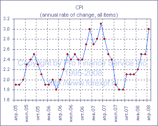 Отчет Национальной статистической службы Великобритании, опубликованный сегодня, показал, что опасения главы Банка Англии Мервина Кинга относительно того, что ему вновь придется писать открытое письмо с объяснениями, почему инфляция цен потребителей превысила целевой уровень более чем на один процент, выглядят в полной мере обоснованными. По данным ONS, темпы роста общего показателя CPI в апреле этого года составили 0.8% м/м, в результате чего годовые темпы роста достигли 3.0%, что существенно отличалось от среднего прогнозного значения в +0.5% м/м до +2.6% г/г, при этом ожидания (прим. ProFinance.ru: +1.3% г/г) превзошел и рост базового индекса, который составил 1.4% г/г после 1.2% г/г в марте. Между тем, свидетельства усиления инфляционных давлений предоставили и данные по розничным ценам, индекс которых вырос на 0.9% м/м до 4.2% г/г, тогда как ожидался рост лишь на 0.6% м/м до 3.9% г/г, при этом темпы роста RPIX (прим. ProFinance.ru: RPI без учета выплат по ипотечным кредитам) также превзошли прогнозы в +3.8% г/г и достигли 4.0% г/г (+0.9% м/м).