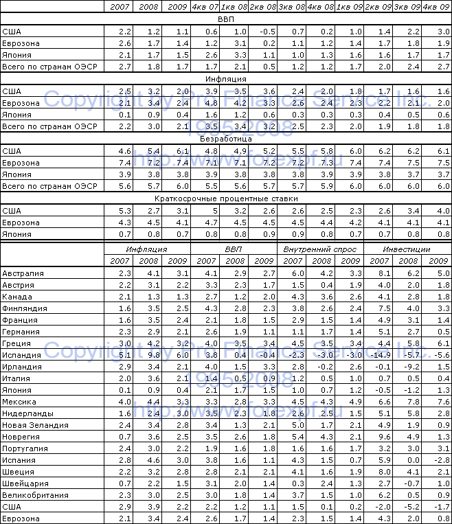 Ниже представлен краткий обзор прогнозов OECD по ряду экономических показателей на 2008 и 2009 годы. Источник: ProFinance.Ru - Новости рынка Форекс