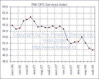 Опубликованный сегодня ежемесячный отчет CIPS/NTC показал, что индекс деловой активности PMI в секторе услуг Великобритании в мае снизился до 49.8 пункта с 50.4 пункта, что не только оказалось хуже среднего прогноза аналитиков в 50.5, но и стало первым значением индекса ниже ключевой области в 50.0 пункта с марта 2003 года. Между тем, индекс занятости достиг нового минимума за всю историю показателя и составил 46.5 пункта после 51.0 в апреле, а индекс деловых ожиданий продемонстрировал максимальное падение с октября 2001 года и достиг 64.9 после 65.3 пункта в предыдущем месяце. Отчет, как в целом и остальная статистика из Туманного Альбиона, просигнализировал о дальнейшем нарастании ценовых давлений: индекс цен на входе достиг исторического максимума в районе 67.7 пункта после 67.3 ранее, а индекс цен на выходе поднялся с 55.2 до 55.8 пункта. Источник: ProFinance.Ru - Новости рынка Форекс