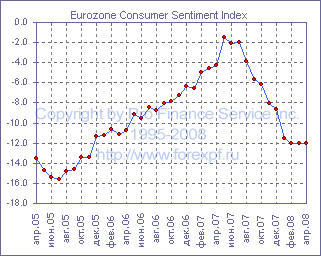Индикатор экономических настроений, опубликованный сегодня Европейской комиссией, указал на их неожиданное ослабление в июне и достиг минимального уровня за последние пять лет в 94.9 пункта после 97.6 пункта в предыдущем месяце (прим. ProFinance.ru: показатель был пересмотрен с 97.1 пункта), что оказалось не только хуже среднего прогноза аналитиков в 96.0 пункта, но и превзошло наиболее пессимистичные ожидания. Между тем, падение индекса доверия в промышленности с -2 до -5 пунктов также оказалось хуже ожиданий в -3 пункта, тогда как разочарованием для участников рынка стало и падение индекса потребительского доверия, который достиг -17 пунктов после -15 пунктов в мае. Домохозяйства сократили свои планы по крупным покупкам, учитывая ухудшение финансовой ситуации, и не особенно позитивно оценивают дальнейшие перспективы. В розничном секторе настроения, между тем, в июне также продемонстрировали ухудшение и индекс доверия здесь упал с -1 до -4 пунктов, отражая, в частности, ослабление ожиданий ритейлеров относительно новых заказов в виду роста запасов. В строительном секторе, между тем, наблюдалось некоторое ухудшение, и индекс настроений здесь упал до -11 пунктов после -9 в мае (прим. ProFinance.ru: пересмотрено с -10), учитывая ощутимое ослабление текущих условий и снижение заказов. Единственным сектором, где наблюдалось улучшение, стал сектор услуг: здесь индекс деловых настроений вырос с 8 до 9 пунктов, однако респонденты отмечают ослабления найма новых работников, которое, по их мнению, продолжится. Тем временем, отдельно рассчитываемый Европейской комиссией индикатор делового климата в июне достиг 0.14 пункта, достигнув минимального уровня с ноября 2005 года, после 0.58 пункта в мае, предполагая ослабление роста промышленного производства во втором квартале текущего года, который, однако, как ожидается, останется выше среднего исторического значения. Источник: ProFinance.Ru - Новости рынка Форекс