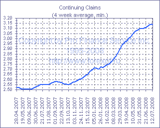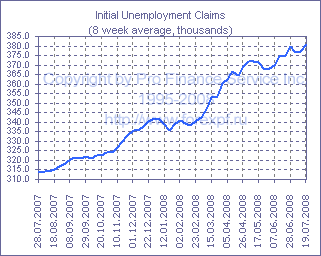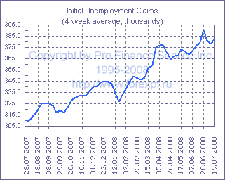 Согласно еженедельному отчету Департамента труда США, число новых заявок на получение пособий по безработице в неделю до 19 июля выросло на 34 000 и составило 406 000 после 372 000 (прим. ProFinance.ru: пересмотрено с 366 000), что оказалось заметно выше ожиданий аналитиков, рассчитывавших на рост их числа на 9 000 до 375 000. С учетом пересмотров, четырехнедельное среднее значение показателя выросло с 378 000 до 382 500, а менее волатильное восьминедельное среднее составило 380 875 после 377 000 на предыдущей неделе. Общее число лиц, получающих пособий по безработице, тем временем, сократилось на 9 000 и в неделю до 12 июля составило 3.107 млн. после 3.116 млн. ранее, при этом четырехнедельное среднее значение показателя снизилось с 3.141 млн. до 3.134 млн. Источник: ProFinance.Ru - Новости рынка Форекс