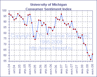 Индекс потребительских настроений Reuters/Мичиганского университета, опубликованный сегодня, продемонстрировал неожиданный рост и в июле составил 61.2 пункта после 56.4 в июне (прим. ProFinance.ru: показатель был пересмотрен с 56.7 пункта), что оказалось заметно лучше ожиданий аналитиков, рассчитывавших на снижение индекса до 56.0 пункта. Согласно отчету, индекс текущих условий в июле был пересмотрен с 69.5 пункта до 73.1 пункта после 67.6 месяцем ранее, а индекс ожиданий составил не 48.3, а 53.5 пункта, поднявшись с 49.2 в июне. Между тем, в меньшую сторону были пересмотрены индексы инфляционных ожиданий: индекс однолетних ожиданий составил 5.1%, а не 5.1% и, таким образом, не изменился по сравнению с предыдущим месяцем, тогда как индекс пятилетних инфляционных ожиданий составил 3.2% после 3.4%, оказавшись на 0.2% ниже предварительного показателя. Источник: ProFinance.Ru - Новости рынка Форекс