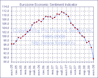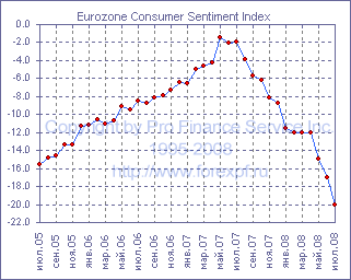 Согласно опубликованному сегодня отчету, экономические настроения в Еврозоне продолжили слабеть, о чем свидетельствовало снижение одноименного индекса в июле с 94.8 пункта до 89.5 пункта, что оказалось ниже ожидавшихся 93.0 пункта. Между тем, несколько хуже прогнозов (прим. ProFinance.ru: -7 и -19 пунктов) оказались и индексы доверия промышленности и потребительского доверия, которые упали с -5 и -17 до -8 и -20 соответственно. Тем временем, настроения в секторе услуг, розничном и строительном секторах также продолжили ухудшаться и значения соответствующих индексов в июле составили 1, -9 и -14 пунктов после 9, -4 и -11 в предыдущем месяце. Что же касается индекса делового климата, рассчитываемого Европейской комиссией отдельно, то здесь также было зафиксировано снижение, при этом показатель оказался в отрицательной зоне и после 0.13 пункта в июне составил -0.21 пункта. Источник: ProFinance.Ru - Новости рынка Форекс