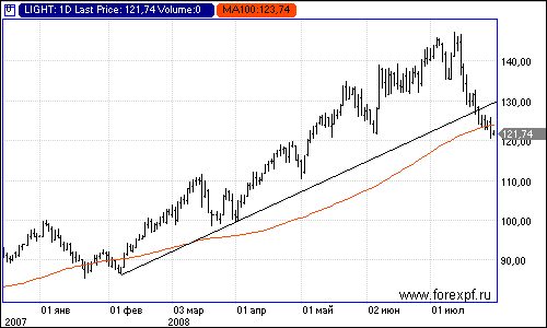 После падения к свежим минимумам в ходе торгов во вторник, нефть в азиатскую сессию продемонстрировала некоторое восстановление, которое, однако, оказалось весьма умеренным и, судя по всему, было обусловлено фиксацией прибыли краткосрочными спекулянтами. Достигнув отметки в $122.67 за баррель, "черное золото" возобновило нисходящее движение и в настоящее время держится около $121.90, оставаясь неподалеку от минимумов сессии. После весьма агрессивной распродажи, наблюдавшейся в последнее время, нефть выглядит перепроданной и имеет шансы на коррекцию выше, в направлении $129.50 (пробитая линия тренда с февраля 2008), а возможно и к $132.86 (максимум 22 июля). Однако настрой на рынке по-прежнему носит негативный характер, а пробитие линии тренда с минимумов февраля на прошлой неделе и закрытие ниже 100-дневной скользящей средней во вторник привели к дальнейшему ухудшению технической картины, при этом снижение открытого интереса является еще одним негативным фактором. В подобных условиях уверенный прорыв поддержки в районе $121.85/$119.80 может поддержать более активную капитуляцию быков и сделает возможным дальнейшее падение. Дмитрий Храбров Источник: ProFinance.Ru - Новости рынка Форекс
