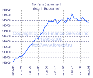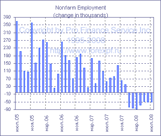 Ежемесячный отчет Департамента труда США, опубликованный сегодня, показал, что в июле число рабочих мест в американской экономике сократилось на 51 000, что оказалось идентичным снижению в предыдущем месяце, однако оказалось немного лучше прогнозов экономистов, рассчитывавших в среднем на снижение на 65 000. Таким образом, с начале текущего года число рабочих мест сократилось на 463 000, демонстрируя снижение в среднем на 66 000 в месяц. Согласно отчету, рост числа новых рабочих мест в июле наблюдался лишь в части государственных учреждений, где он составил 25 000, в секторе образовательных услуг и услуг здравоохранения, где их число выросло на 39 000, а также в горнодобывающих компаниях (+11 000), секторе развлечений и отельном бизнесе (+1 000) и сфере иных услуг (+6 000). Изменений в числе рабочих мест не было зафиксировано в коммунальном хозяйстве и финансовом секторе, тогда как их сокращение было продолжилось в секторе обрабатывающей промышленности (-35 000), строительном секторе (-22 000), оптовой и розничной торговле (по -17 000 в каждом), среди транспортных и складских компаний (-6 000), а также в сфере информационных услуг (-13 000) и профессиональных и деловых услуг (-24 000). Тем временем, уровень безработицы в США в июле вырос до 5.7% (прим. ProFinance.ru: 5.682%) после 5.5% в июне, что оказалось немного выше среднего прогноза аналитиков в 5.6%. Рабочая сила в июле выросла на 213 000 до 154.603 млн., а число безработных выросло на 285 000 до 8.784 млн. Темпы роста средней заработной платы, между тем, остались на прежнем уровне в +0.3% м/м до +3.4% г/г, а средняя продолжительность рабочей недели снизилась с 33.7 до 33.6 часов. Источник: ProFinance.Ru - Новости рынка Форекс