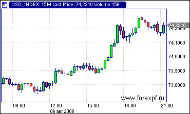 22:07 BushidO: После того, как менее двух недель назад индекс доллара торговался вблизи 72,65, автор этой колонки прогнозировал снижение в диапазон 70,90-70,64. В результате индекс немедленно двинулся вверх. Ранее индекс достиг 74,28, что стало максимумом восходящего тренда, наблюдавшегося почти в течение трех недель. Сопротивление сложилось на максимуме июня 74,31, ставшим максимумом восходящего тренда с марта, когда индекс достиг минимума долгосрочного нисходящего тренда 70,70.