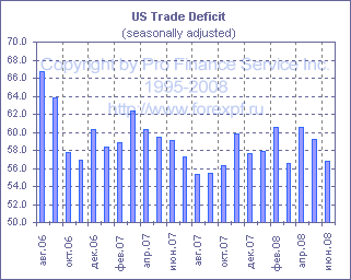 Опубликованный сегодня отчет Департамента торговли США, в июне текущего года дефицит торгового баланса сократился до $56.8 млрд. с $59.2 млрд. месяцем ранее, что оказалось заметно лучше среднего прогноза аналитиков, рассчитывавших на его рост до $61.5 млрд. Согласно отчету, подобное изменение было обусловлено ростом экспорта на $6.4 млрд. до $164.4 млрд., тогда как импорт вырос лишь на $3.9 млрд. до $217.2 млрд. Дефицит торговли товарами сократился на $2.1 млрд. и в июне составил $70.0 млрд., отражая рост экспорта на $5.7 млрд. и увеличение импорта на $3.6 млрд. до $116.7 и $186.7 млрд. соответственно. Между тем, результатом торговли услугами стал профицит в размере $13.257 млрд., увеличившись по сравнению с $12.907 млрд. в мае, что стало следствием роста экспорта на $0.679 млрд. до $47.714 млрд., тогда как импорт увеличился на $0.329 млрд. до $34.457 млрд. В разбивке по странам профицит торгового баланса США составил $1.5 млрд. (ранее $1.3 млрд.) с Сингапуром, $1.0 млрд. (ранее $1.1 млрд.) в Австралией и $0.4 млрд. (ранее $0.3 млрд.) с Египтом, тогда как дефицит был зафиксирован с Китаем ($21.4 после $21.0 млрд.), странами ОПЕК ($18.1 после $17.9 млрд.), ЕС ($8.2 млрд. после $7.9 млрд.), Канадой ($7.2 млрд. после $5.4 млрд.), Японией ($6.1 млрд. после $5.0 млрд.), а также с Мексикой ($5.7 млрд. против $6.6 млрд. ранее), Венесуэлой ($4.6 млрд. против $3.9 млрд.) и Нигерией ($3.3 млрд. после $3.2 млрд. в мае). Источник: ProFinance.Ru - Новости рынка Форекс