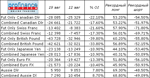 Данные CFTC по спекулятивным позициям на IMM на 19 августа