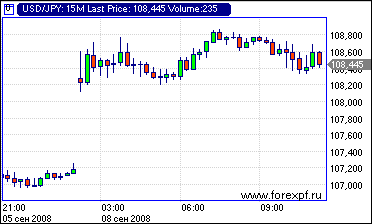 | 08.09.08 09:54 | Доллар/иена. Технический взгляд | 08.09.08 12:25 | Mizuho Bank. Торговые рекомендации по основным валютным парам |