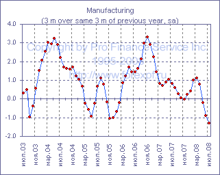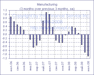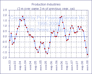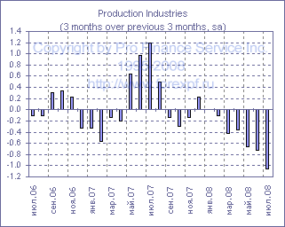 Ежемесячный отчет Национального статистического агентства Великобритании в очередной раз подтвердил тезис о том, что экономика Туманного Альбиона замедляется более стремительными темпами, нежели ожидали многие экономисты, а позитивное влияние ослабления курса национальной валюты на экспорт не оказывает существенной поддержки. Так в июле объем промышленного производства сократился на 0.4% м/м, в результате чего годовые темпы сокращения достигли 1.9%, тогда как средний прогноз предполагал сокращение лишь на 0.2% м/м до -1.5% г/г, при этом темпы сокращения производства в обрабатывающей промышленности на уровне 0.2% м/м до -1.4% г/г также оказались хуже ожиданий (прим. ProFinance.ru: -0.1% м/м до -1.1% г/г). Между тем, в горнодобывающем секторе производство сократилось на 3.8% м/м до -9.4% г/г, а в секторе нефте- и газодобычи - на 4.4% м/м до -8.2% г/г, тогда как положительные изменения были зафиксированы лишь в секторе поставок электроэнергии, газа и воды, где рост составил 0.9% м/м до +1.6% г/г, хотя стоит отметить, что объем производства здесь за последние три месяца сократился на 1.3% по сравнению с предыдущими тремя месяцами. Тем временем, среди подсекторов обрабатывающей промышленности аналогичный показатель продемонстрировал положительную динамику лишь в текстильной промышленности, где он вырос на 0.7% после +0.3% в предыдущем месяце, и в химической промышленности, где он поднялся на 0.8% после -0.4% ранее. Источник: ProFinance.Ru - Новости рынка Форекс