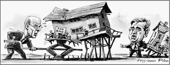 Иными словами, нужно избежать экономического коллапса и помочь нуждающимся. К последним, более того, относятся глупые бедняки, а не глупые богачи. С этой точки зрения, то, что происходит в США можно назвать оправданным прагматизмом, хотя и далеким от идеала. Цены на жилье существенно упали, отмечает профессор Шиллер. По крайней мере, какая-то часть поддержки достанется остро в ней нуждающимся, хотя многое уйдет на спасение кредиторов обанкротившихся финансовых организаций с огромными долгосрочными последствиями. Но, опять-таки, сложно поверить в то, что у правительства была какая-то другая альтернатива. Итак, можно ли считать политические решения в США примером, которому должны последовать в Великобритании, где рынок жилья также стоит на грани краха? Будем надеяться, что нет. По крайней мере до последнего времени Великобритании удавалось избежать открытых публичных обязательств в отношении жилищного финансирования. Более того, предлагать субсидированное финансирование на рынке, который вот-вот рухнет, при этом никто не имеет ни малейшего понятия о том, как долго и как глубоко он будет падать, равноценно развращению финансовых меньшинств. И, уж конечно, ни одна хорошая политика не будет пытаться зайти дальше фантазии о том, что британцы смогут разбогатеть, продавая друг другу дома на вторичном рынке за безумные деньги.