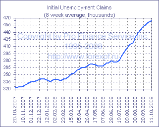 Опубликованный сегодня отчет Департамента труда США показал, что число первичных заявок на получение пособий по безработице в неделю до 11 октября сократилось на 16 000 до 461 000, что оказалось несколько ниже среднего прогноза аналитиков (прим. ProFinance.ru: 470 000), хотя, вероятно, это снижение было отчасти обусловлено государственным выходным. Таким образом, с учетом пересмотра данных за предыдущую неделю с 478 000 до 477 000, четырехнедельное среднее число заявок выросло с 482 500 до 483 250, тогда как менее волатильный восьминедельный показатель поднялся с 461 250 до 464 500 заявок. Тем временем, общее число лиц, получающих пособия по безработице, продолжило расти и в неделю до 4 октября составило 3.711 млн., поднявшись с 3.671 млн. ранее. Четырехнедельный показатель составил 3.632 млн. после 3.566 млн. неделей ранее, и существующие тенденции позволяют ожидать дальнейшего ослабления потребительских расходов. Источник: ProFinance.Ru - Новости рынка Форекс