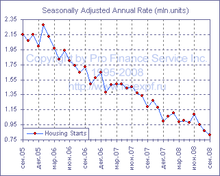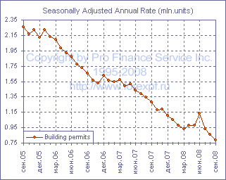 Ежемесячный отчет Департамента торговли США, опубликованный сегодня, показал, что в сентябре ситуация на рынке жилья не стала лучше, принимая во внимание резкое падения числа новых строительств на 6.3% м/м до -31.1% г/г, в результате чего в годовом исчислении с учетом сезонных колебаний они составили 817 000 после 872 000 в августе и 949 000 в июле, что оказалось заметно хуже ожиданий аналитиков (прим. ProFinance.ru: 470 000). По мнению главного экономиста HFE Яна Шеффердсона, отчеты ужасен, причем ужасен он даже если принять во внимание возможность негативного влияния урагана Айк, который, как мы знаем, уже отразился на промышленном производстве и заявках безработных. Между тем, анализ данных по регионам не дает оснований говорить о каких-либо ярко-выраженных негативных изменениях в южной части США, учитывая, что в этом районе, напротив, был зафиксирован рост на 0.5% м/м до 403 000. На северо-востоке, тем временем, наблюдалось падение числа новых строительств на -20.9% м/м до 117 000, тогда как на западе оно составило 16.8% м/м до 164 000, а на среднем западе был отмечен рост на 5.6% м/м до 133 000. Число строительств односемейных домов сократилось на 12.0% м/м или -41.9% г/г до 544 000, а число строительств кондоминиумов выросло на 7.5% м/м или +9.6% г/г до 273 000. Число разрешений на строительство, между тем, сократилось в сентябре на 8.3% м/м до -38.4% г/г и составило 786 000. Источник: ProFinance.Ru - Новости рынка Форекс