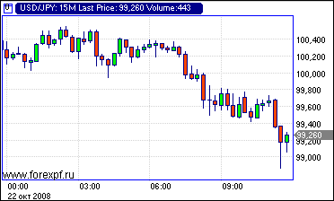 В начале торговой сессии в Европе доллар/иена продолжает нести потери, после того как на торгах в Азии упал ниже уровня Y100. Катализатором очередного нисходящего движения, по сообщениям дилеров, стало падение евро/иены к области значений Y126. Курс достиг минимума на отметке Y98.86, однако ниже фигуры на пару возник спрос, который помог ей несколько стабилизироваться. Дилеры говорят, что уверенный прорыв отметки Y99 станет поводом для возвращения к основанию этого месяца на уровне Y97.91. Один лондонский трейдер сообщает, что сегодня ликвидность просто на нуле, и движения курсов гиперболизированы разовыми вынужденными сделками. Источник: ProFinance.Ru - Новости рынка Форекс