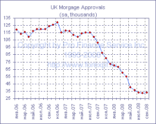 Отчет, опубликованный сегодня Банком Англии, показал, что в сентябре число одобренных заявок на приобретение жилья выросло впервые с июня 2007 года и составило 33 000, оказавшись слегка выше среднего прогноза аналитиков (прим. ProFinance.ru: 32 000). Тем не менее, стоит обратить внимание на то, что существенного улучшения показатель не продемонстрировал, а его августовское значение в 32 000 было рекордным минимумом, при этом важным моментом также стало то, что в то время как рост чистого кредитования под залог недвижимости в сентябре оказался выше ожидавшихся stg0.5 млрд. и составил stg2.167 млрд., результаты пересмотра показателя за август, показали, что в этом месяце впервые наблюдался чистый возврат средств по таким кредитам, который составил stg0.691 млрд. Между тем, чистый потребительский необеспеченный кредит в отчетном месяце вырос на stg0.251 млрд. после stg1.106 млрд. в августе, что оказалось несколько лучше среднего прогноза в +stg0.5 млрд. В целом отчет подтверждает сохранение напряженной ситуации на рынке труда, существенного улучшения которого в обозримом будущем не приходится ожидать, а также указывает на сохранение тенденции к ослаблению потребительских расходов. Источник: ProFinance.Ru - Новости рынка Форекс
