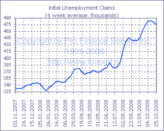 Еженедельный отчет Департамента труда США показал, что в неделю до 25 октября число первичных заявок безработных не изменилось по сравнению с предыдущей неделей (прим. ProFinance.ru: показатель был пересмотрен с 478 000) и составило 479 000, что оказалось несколько выше прогнозов аналитиков, рассчитывавших на снижение до 475 000. С учетом пересмотров среднее число заявок за последние четыре недели сократилось на 5 000 до 475 500, тогда как менее волатильный восьминедельный показатель продолжил расти и достиг 475 000 после 471 500 неделей ранее. Тем временем, общее число лиц, получающих пособия по безработице в неделю до 18 октября сократилось на 12 000 до 3.715 млн., но четырехнедельное среднее значение поднялось до 3.710 млн. после 3.682 млн. ранее. Источник: ProFinance.Ru - Новости рынка Форекс