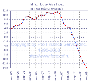 Опубликованный сегодня отчет Halifax по рынку жилья показал, что в октябре текущего года ситуация здесь продолжила стремительно ухудшаться и индекс цен упал на 2.2% м/м после -1.3% м/м месяцем ранее, что привело к ускорению темпов снижения в годовом исчислении с -12.4% до -13.7%. Как результат средняя цена вернулась к уровням октября 2005 года и составила stg168176. В Halifax обращают внимание на улучшение показателя доступности жилья (прим. ProFinance.ru: индекс цены/заработные платы упала на 16% со своего пика в июле 2007 около 5.84 пункта и теперь составляет 4.92 пункта, что является минимальным уровнем за последние четыре с половиной года) и отмечают наличие признаков некоторой стабилизации ситуации на рынке жилой недвижимости. Тем не менее, в целом тональность отчета созвучна данным Nationwide, Hometrack, Rightmove и Land Registry, которые свидетельствовали о продолжающейся коррекции на рынке жилья, и в условиях стремительно слабеющей экономики и весьма жестких кредитных условий ощутимого улучшения ситуации ожидать не стоит. Продолжение охлаждения рынка жилья, на наш взгляд, выглядит наиболее вероятным сценарием развития событий. Источник: ProFinance.Ru - Новости рынка Форекс