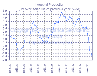 Отчет Eurostat, опубликованный ранее, показал, что объем промышленного производства в Еврозоне в сентябре текущего года сократился на 1.6% м/м, что оказалось несколько выше ожиданий аналитиков рассчитывавших на -1.5% м/м после +0.8% м/м ( ProFinance.ru: пересмотрено с +1.1% м/м), в результате чего годовые темпы падение производства достигли 2.4% после -0.7% в августе. Согласно отчету, в сентябре падение носило широкомасштабный характер, в частности производство потребительских товаров длительного пользования упало на 2.5% м/м до -6.7% г/г после +1.2% м/м до -6.0% г/г, а производство полуфабрикатов сократилось на 2.6% м/м до -3.5% г/г после +1.4% м/м до +0.0% г/г ранее. Тем временем, производство средств производства сократилось на 2.5% м/м до -0.9% г/г после +1.2% м/м до +0.8% г/г, производство энергии упало на 0.8% м/м до -0.6% г/г после +0.8% м/м до +0.0% г/г в августе, а производство потребительских товаров краткосрочного пользования сократилось на 0.4% м/м после +0.3% в предыдущем месяце, в результате чего годовые темпы падения составили 2.1% после -3.1% ранее. Источник: ProFinance.Ru - Новости рынка Форекс