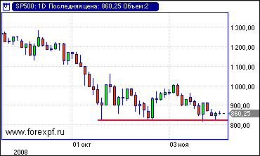 В фокусе мирового финансового сообщества центральное место по-прежнему занимают беспокойства по поводу долгосрочного замедления мировой экономики. "Пилюля" в виде первого транша объемом 350 млрд. долларов, который был совершен в рамках программы TARP Казначейством США, видимо, усвоена "больным организмом" рынка. Ее благотворное влияние сходит на нет, и рынку требуется "новая порция антибиотиков". Однако процесс принятия экстренных мер в помощь американской экономики обретает вялотекущую форму. При этом Министр Финансов США Генри Полсон, похоже, не собирается предоставить второй транш в рамках программы TARP. После банкротства Lehman Brothers участники рынка крайне болезненно реагируют на ухудшения положения крупнейших представителей американской экономики. Как известно, американская автомобильная промышленность, являющаяся своеобразным символом экономики США, находится в удручающем положении. Запланированная помощь американским автопроизводителям в размере стимулирующего пакета величиной 25 млрд. долларов, откладывается. Новости о том, что Citigroup собирается уволить 50000 сотрудников, а Pepsi сокращает 3150 рабочих мест (более 2000 в Мексике), не вселяют оптимизма инвесторам. Об этом сообщают показания индекса волатильности CBOE (VIX), который является традиционным индикатором отношения участников рынка к рисковым активам. По результатам вторника индекс составил 69.08 пункта. Это довольно высокое значение. Напомним, что в октябре, когда индекс S&P 500 яростно атаковал уровень 580 пунктов, VIX достигал уровня 89.53 пункта, который является его 52-недельным максимумом. Когда в начале ноября индекс S&P 500 отскочил к уровню 1000 пунктов, VIX снизился до 44.25 пункта. Не смотря на то, что техническая картина дает предпосылки для развития восходящей коррекции, инвесторы с большой опаской относятся к акциям.