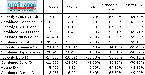 Данные CFTC по спекулятивным позициям на IMM на 18 ноября