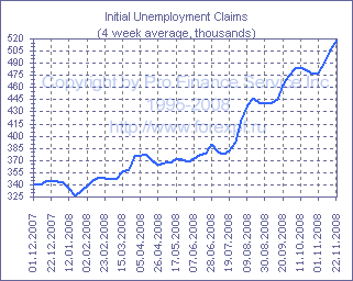 Число первичных заявок на получение пособий по безработице в США в неделю до 22 ноября сократилось на 14 000 и составило 529 000, что оказалось несколько лучше среднего прогноза аналитиков, рассчитывавших на 540 000, при этом с учетом пересмотра данных за предыдущие недели (прим. ProFinance.ru: с 542 000 до 543 000 и с 515 000 до 516 000 соответственно) среднее число заявок за последние четыре недели выросло на 11 000 до 518 000, тогда как мене волатильный восьминедельный показатель поднялся с 493 750 до 497 500. Общее число лиц, получающих пособия, тем временем, в неделю до 15 ноября сократилось на 54 000 до 3.962 млн., однако четырехнедельное среднее значение показателя продолжило расти и составило 3.929 млн. после 3.869 млн. неделей ранее. Источник: ProFinance.Ru - Новости рынка Forex