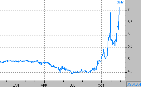 На графике: Курс гривны к доллару на межбанковском рынке. См. также: Курс гривны к российскому рублю