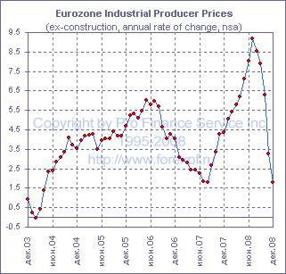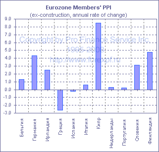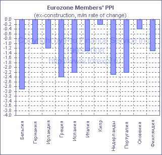 Опубликованный сегодня отчет Eurostat показал, что ослабление инфляционных давлений на производителей в декабре приняло более выраженную форму, нежели в среднем ожидали экономисты, чей прогноз составлял -1.2% м/м до +2.1% г/г, и PPI упал на 1.3% по сравнению с ноябрем, тогда как годовые темпы роста замедлились до 1.8% после +3.3% в предыдущем месяце. Согласно данным отчета, цены на энергоносители в декабре упали на 3.7% м/м до +2.1% г/г после -5.2% м/м до +6.2% г/г в ноябре, в результате чего PPI без учета данного компонента, а также строительства снизился на 0.6% м/м до +1.6% г/г после -0.9% м/м до +2.2% г/г ранее. Тем временем, снижение продолжили и цены на полуфабрикаты, которые в отчетный период потеряли 1.2% м/м после -1.8% м/м в ноябре, в результате чего в годовом исчислении роста показателя замедлился с 2.5% до 1.3%, тогда как ниже упали и цены на потребительские товары краткосрочного пользования, снизившиеся в декабре на 0.2% м/м после -0.4% м/м до +1.4% г/г +1.9% г/г в ноябре. Тем временем, цены на средства производства не продемонстрировали изменений и темпы их роста остались на уровне октября и ноября в 2.2%. Потребительские товары длительного пользования, между тем, поднялись в цене на 0.1% м/м, а годовые темпы роста показателя стабилизировались около 2.5%. Источник: ProFinance.Ru - Прогнозы курсов валют.