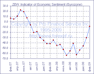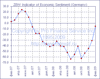 Ежемесячный отчет немецкого института ZEW показал, что, в то время как индикаторы текущих условий в Германии и Еврозоне вновь упали в феврале и оказались несколько хуже ожиданий аналитиков, показатели экономических ожиданий продолжили восстановление, при этом оно в очередной раз превзошло прогнозы, которые предполагали куда более скромное улучшение. Индекс текущих условий в феврале составил -86.2 пункта после -77.1 пункта в предыдущем месяце, тогда как ожидалось его снижение лишь до -82.0 пунктов. Индекс ожиданий в Германии, между тем, подскочил с -31.0 до -5.8 пункта, оказавшись заметно выше прогноза в -25.0 пунктов. Тем временем, в Еврозоне значения данных индексов в феврале составили -91.0 после -84.7 пункта в предыдущем месяце и -8.7 после -30.8 пункта ранее соответственно. Комментируя отчет, экономисты ZEW отметили, что в настоящее время экономика Германии продолжает замедляться, однако люди со все большим оптимизмом смотрят в будущее, и ослабление экономики может достичь низшей точки уже в ближайшие несколько месяцев. Источник: ProFinance.Ru - Фондовый рынок и Forex