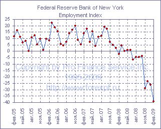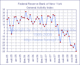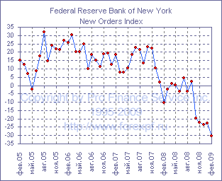 Отчет ФРБ Нью-Йорка Empire State показал, что деловая активность в обрабатывающей промышленности в феврале этого года сократилась: одноименный показатель достиг -34.65 пункта после -22.20 в январе и -27.88 в декабре, при этом его значение оказалось хуже, чем в среднем ожидали экономисты, прогнозировавшие -23.75 пункта. Согласно отчету, индекс новых заказов в отчетном месяце упал до -30.51 с -22.81, индекс доставок поднялся с -13.12 до -8.13 пункта, индекс невыполненных заказов составил -24.14 после -26.14, а индекс запасов поднялся с -19.32 до -8.05 пункта. Тем временем, индекс уплаченных цен составил -13.79 против -18.18 пункта в январе и -7.45 в декабре, а индекс полученных цен рухнул к -20.69 после -3.41 и -11.70 пункта соответственно. Что касается индекса занятости, то здесь сохранилась негативная динамика: показатель в феврале составил -39.08 пункта после -26.14 в январе и -23.40 в декабре, при этом снизился и индекс средней продолжительности рабочей недели, составивший -31.03 после -23.86 ранее.