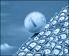 Российский рубль может оказаться в текущем году самой слабой из валют развивающихся стран в Европе, на Ближнем Востоке и в Африке, поскольку Россия находится в "осаде глобального экономического кризиса", пишут в своих аналитических комментариях Merrill Lynch & Co. По их мнению, рубль может продолжить девальвацию и достигнуть уровня 44.60 по отношению к доллару США на конец текущего года. В августе прошлого года рубль упал по отношению к американской валюте на 35%.