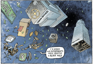 Это был исторический момент. И вот, 15 сентября 2008 года история достигла предела. Lehman Brothers заявил о банкротстве. На следующий день ФРС сообщила о том, что предоставит AIG невообразимую сумму в размере 85 млрд. долларов. Затем один из крупнейших фондов денежного рынка был вынужден проинформировать инвесторов о том, что несет убытки, выражающиеся в сокращении чистых активов ниже $1. То была не просто рецессия, вероятность которой уже обсуждалась в период летней кампании. Казалось, что после кошмарной недели, последовавшей за 15 сентября, американская экономика просто разваливалась на куски. Активы на 401 000 счетов были уничтожены. Большая часть экономики словно бы оказалась в руках дураков и разбойников с большой дороги. Компании, некогда бывшие столпами экономики - GM, Chrysler, Lehman, большая часть Уолл Стрит - рушились и шли ко дну. После инаугурации Обама должен был реализовать свои обещания относительно здравоохранения в прочный закон. Вместо этого ему пришлось заниматься лежащей в руинах экономикой и системой кредитования в таком же состоянии.