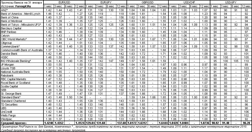Прогнозы валютных курсов от ведущих банков мира на 2010 год