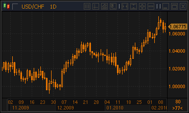 В рамках нисходящей коррекции с максимумов, которые не наблюдались с августа прошлого года, доллар/франку удалось нащупать опору вблизи Chf1.06, и после того, как сегодня в начале европейской сессии повторный штурм этой поддержки не принес результатов, пара отскочила выше. Рост был остановлен около Сhf1.0720 и теперь доллар торгуется вблизи Chf1.0678, но настрой несколько улучшился и быки сохраняют надежды на возобновление восходящего движения. Преградой на пути такового теперь являются офера в районе Chf1.0685, тогда как основной интерес к продаже сохраняется вблизи внутридневных максимумов, хотя выше заметны стопы. Валютные стратеги BNP Paribas, комментируя динамику пары, однако, настроены не столь оптимистично. В банке отмечают, что техническая картина предполагает риски завершения восходящего движения с минимумов ноября, на, что, в частности, указывает неудачная попытка пробиться выше сопротивления в районе Chf1.0825, где проходит уровень коррекции Фибоначчи в 38.2% от падения 2008/2009 годов. Стратеги BNP Paribas рекомендуют теперь внимательно следить за поддержкой на Chf1.0595, прорыв которой откроет дорогу к Chf1.0500/Chf1.0495, при этом потеря опоры в этой области будет сигналом о том, что восходящий тренд завершил свое существование. Источник: ProFinance.Ru - Новости рынка Форекс