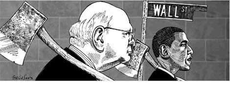 Сегодня в финансовом секторе люди видят не умелые руки прежних властелинов вселенной, а грязные лапы неблагодарных корыстолюбцев. И в этом смысле неудивительно, что популярность президента Обама, отчаявшегося и "побитого" избирателями штата Массачусетс, упала еще больше, чем поддержка его партии. Он надлежащим образом добавил топор Пола Волкера, 82-летнего бывшего председателя ФРС, в набор регулятивных инструментов своего министра финансов Тима Гайтнера. Волкер предлагает версию Закона Гласса-Стигала, введенного в США в 1933 году, о разграничении коммерческой и инвестиционной банковской деятельности. В своем недавнем предложении американский президент Обама сослался на "правило Волкера" о том, что "впредь банкам будет запрещено иметь в собственности, спонсировать или делать инвестиции в хеджевые фонды, паевые инвестиционные фонды или осуществлять собственные торговые операции для получения прибыли, не имеющие отношения к обслуживанию своих клиентов". Президент также отметил, что "необходимо предотвратить дальнейшую консолидацию финансовой системы".