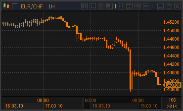 | 19.03.10 10:39 | Евро/доллар. Комментарии дилеров | 19.03.10 11:54 | Аналитики ожидают тестирования исторического минимума в евро/франке |